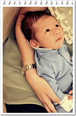 看著wesley滿月的照片,真想不到我的兒子已經不再是一個手可以抱起軟棉棉的物體了。